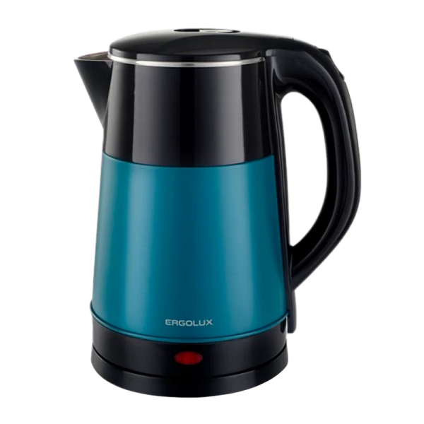 Чайник ERGOLUX ELX-KS14-C44 черный/зеленый с объемом 2,3 литра и мощностью 1800Вт. Идеален для дома, скрытый нагревательный элемент, автоотключение, индикатор включения.