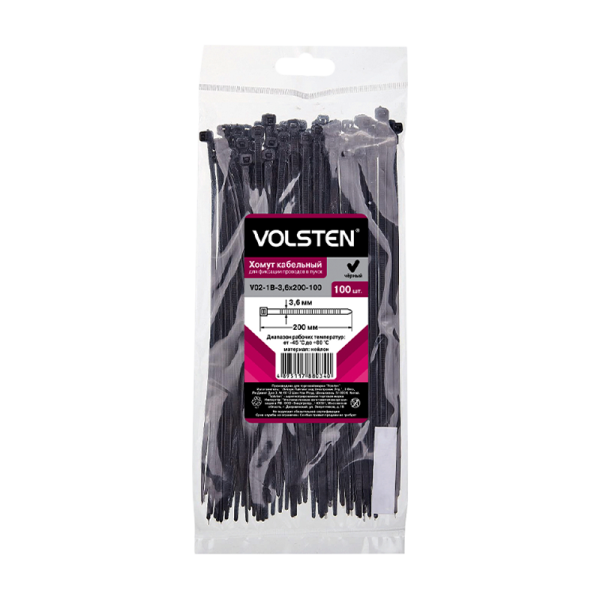 Хомут Volsten нейлон 3.6х200мм 100шт. черный (1/10/200)