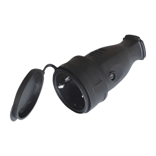 Гнездо штепсельное Прогресс c/з каучуковое с крышкой черное;