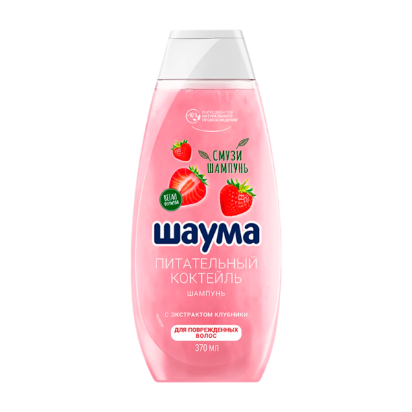 Шампунь для волос Шаума «Питательный коктейль» 370 мл с экстрактом клубники интенсивно восстанавливает поврежденные волосы, наполняя их силой и блеском. Не содержит парабенов и силиконов, качественно очищает, не пересушивая волосы. Образует обильную пену и имеет приятный летний аромат ягод. Результат – здоровые волосы, легкое расчесывание и блеск после нескольких применений!