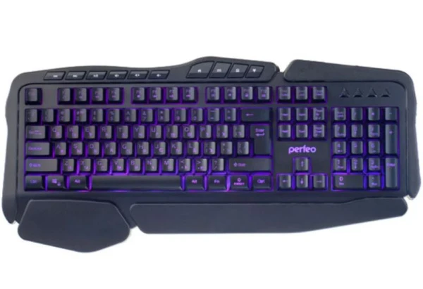 Внутренняя LED подсветка трех цветов (красный, синий, фиолетовый). Конструкция с поддержкой запястий для более комфортной работы