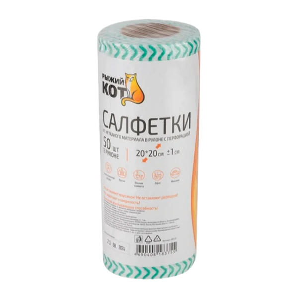 Салфетка Рыжий кот 20х20см 50шт. спанлейс в рулоне (1/20)