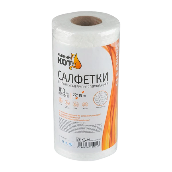 Салфетка Рыжий кот 20х19см 100шт. спанлейс с перфорацией в рулоне (1/12)