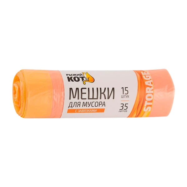 Мешки для мусора Рыжий кот 35л 14мкм ПНД 15шт. с завязками оранжевый (1/40)