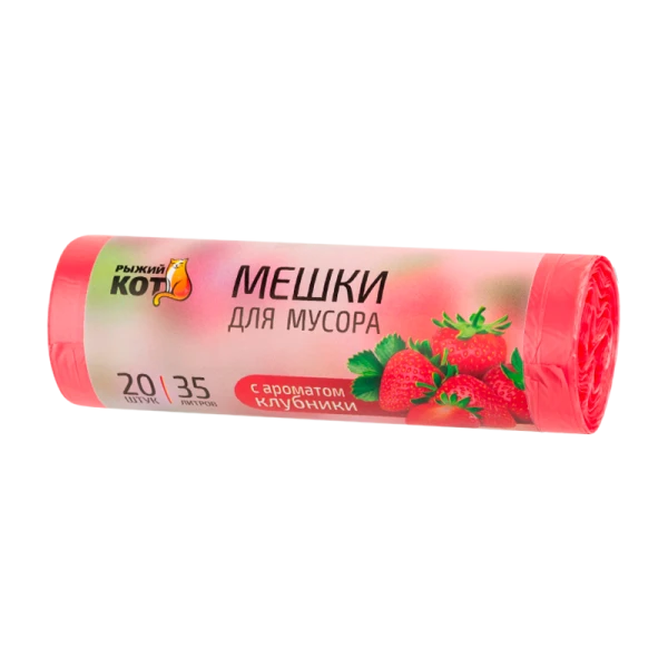 Мешки для мусора Рыжий кот 35л 10мкм ПНД 20шт. с ароматом клубники красный (1/50)