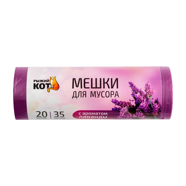 Мешки для мусора Рыжий кот 35л 10мкм ПНД 20шт. с ароматом лаванды фиолетовый (1/50)