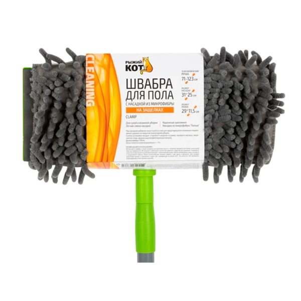 Швабра для пола Рыжий кот 123см телескопическая с насадкой "Лапша" CLAMP зеленый (1/24)