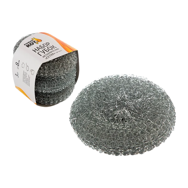 Металлические губки для мытья посуды от бренда "Рыжий кот" - это надежный и эффективный инструмент для борьбы с грязью и жиром на кухне. В упаковке содержится 3 губки с сетчатой структурой, которая позволяет легко и быстро удалять загрязнения с поверхностей.