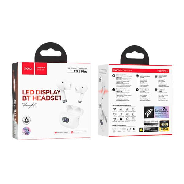Наушники внутриканальные HOCO EQ2 Plus bluetooth 5.4 с микр. дисплей белый (1/14/140)