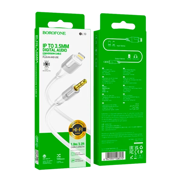 Кабель AUX Borofone BL19 Jack 3.5mm (m)-Lightning (m) 1м пластик белый (1/360)