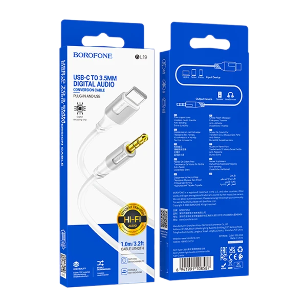 Кабель AUX Borofone BL19 Jack 3.5mm (m)-Type-C (m) 1м, белый;