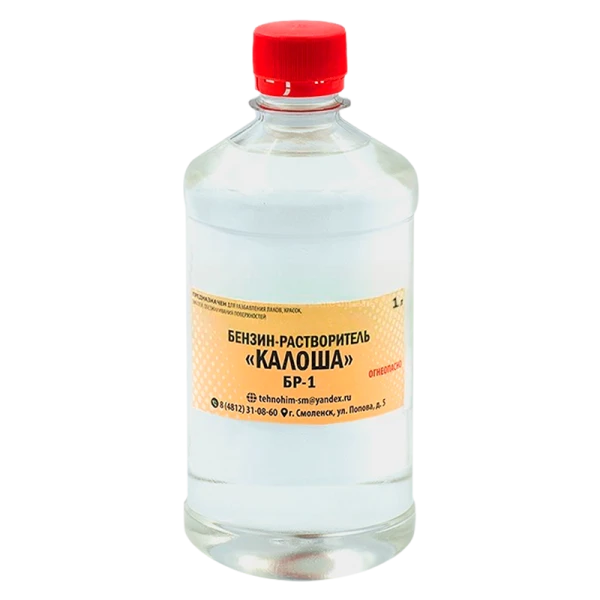 Бензин-растворитель "КАЛОША" БР-1 Технохим предназначен для обезжиривания поверхностей, разбавления красок, очистки различных механизмов от загрязнений, промывки печатных плат, изготовления быстросохнущих масляных лаков и красок, а также других целей. Мгновенно испаряется с поверхности, не оставляя следов и пятен. Поставляется во флаконе объемом 1 литр, расходуется экономно.