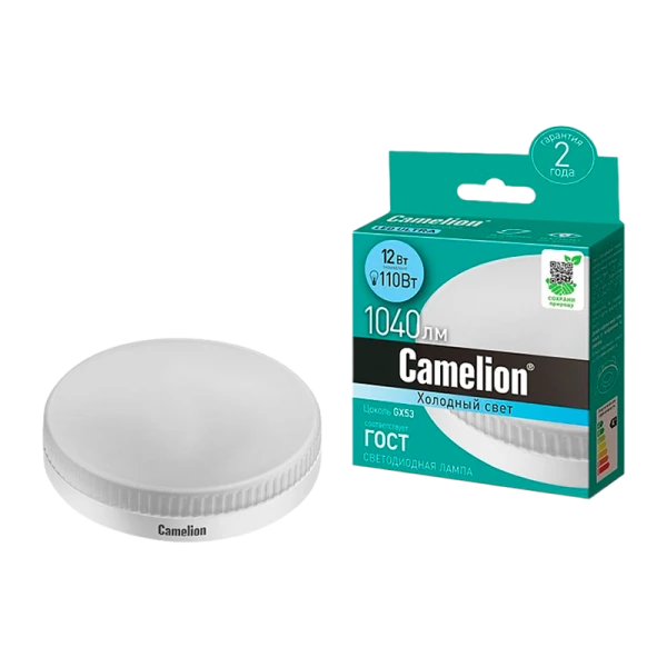 Светодиодная лампа Camelion LED12-GX53/845/GX53 12Вт 220В инновационное решение, разработанное на основе новейших светодиодных технологий (LED). Предназначена для освещения жилых, офисных и коммерческих помещений. Встроенный источник питания позволяет использовать СДЛ Camelion в стандартных патронах.