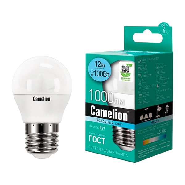 Светодиодная лампа Camelion LED12-G45/845/E27 - решение для освещения жилых, офисных и коммерческих помещений.