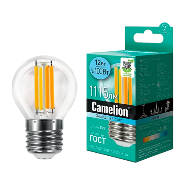 Светодиодная лампа Camelion LED12-G45-FL/845/E27 на 12Вт, 220В. Прекрасное решение для жилых, офисных и коммерческих помещений.