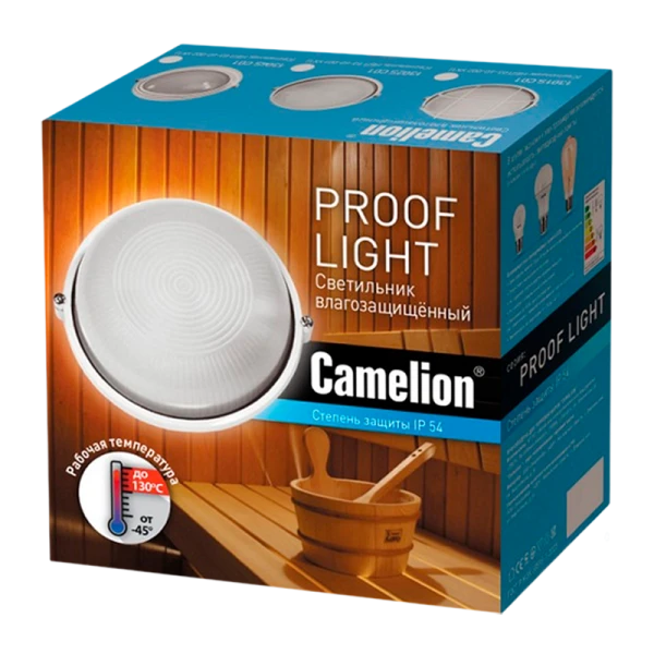 Светильник Camelion 1102S C01 NEW до 130 оС и мощностью 100Вт идеально подходит для общего освещения подсобных,промышленных, производственных помещений, а так же для помещений с повышенной влажностью (бани, сауны, бассейны и т.д.);