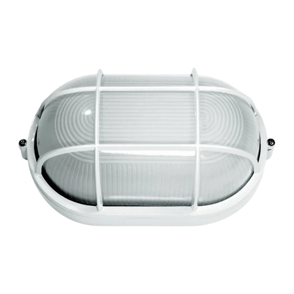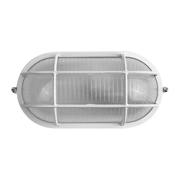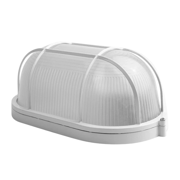 Светильник влагозащищенный Camelion 1201S 100W 230V E27 IP54 накладной решетка 115мм белый (1/8)