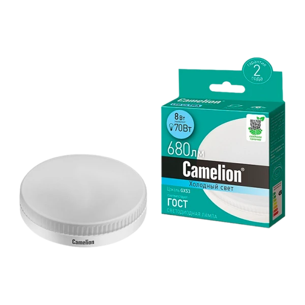 CДЛ Camelion LED8-GX53/845/GX53 - светодиодная лампа мощностью 8Вт. Идеальна для жилых, офисных и коммерческих помещений.