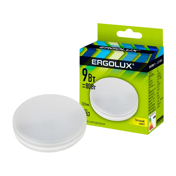 Лампа светодиодная Ergolux GX53 9W 3000К 172-265V таблетка матовая (1/10/100)