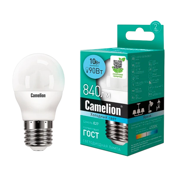СДЛ Camelion LED10-G45/845/E27 — это надежное решение для освещения жилых, офисных и коммерческих помещений.