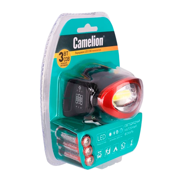 Налобный фонарь Camelion LED5382 оснащен COB светодиодом и работает от 3 батареек AAA. Подходит для активного отдыха и работы в темных условиях. Яркий поток ближнего света. Энергосберегающий, прерывистый и SOS - режимы, поворотный корпус. Универсальный блистер - можно cтавить вертикально и подвешивать на дисплей.