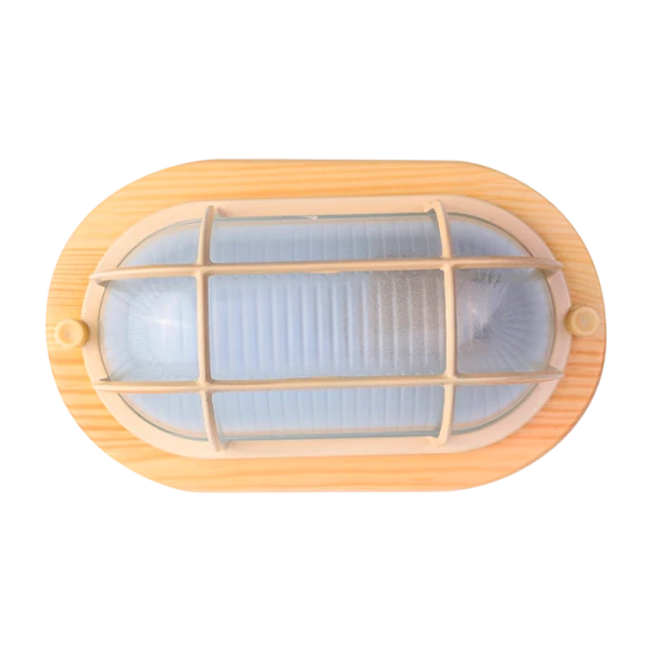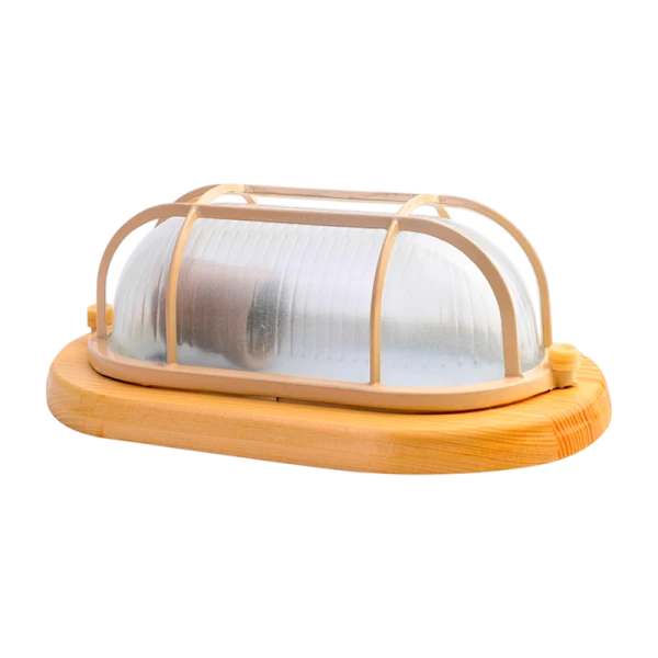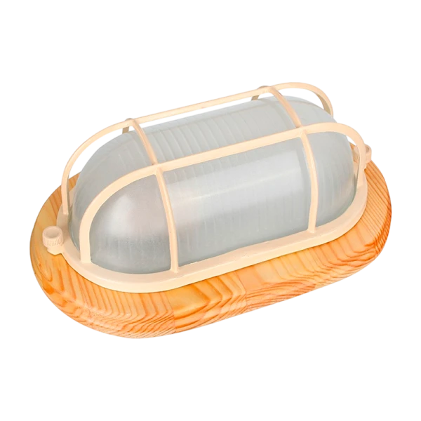 Светильник влагозащищенный Camelion 1401D 60W 230V E27 накладной решетка 140мм клён (1/8)