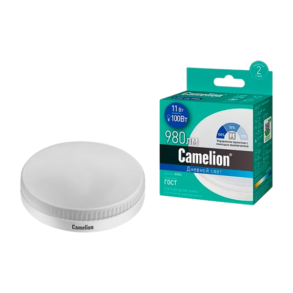 Лампа светодиодная Camelion GX53 11W 6500К 170-265V таблетка диммируемая матовая (1/10/100)