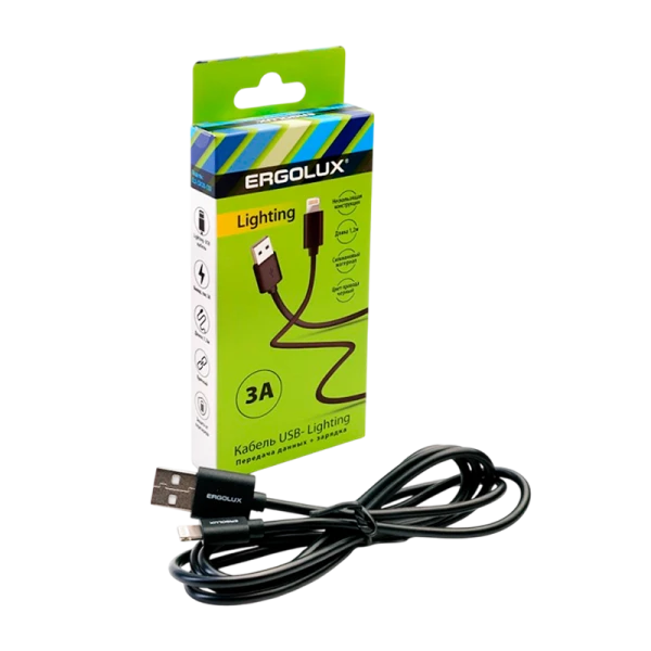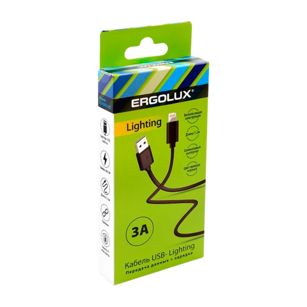 Кабель Ergolux ELX-CDC03-C02 USB (m)-Lightning (m) 1.2м 3.0A силикон черный в коробке (1/10/240)