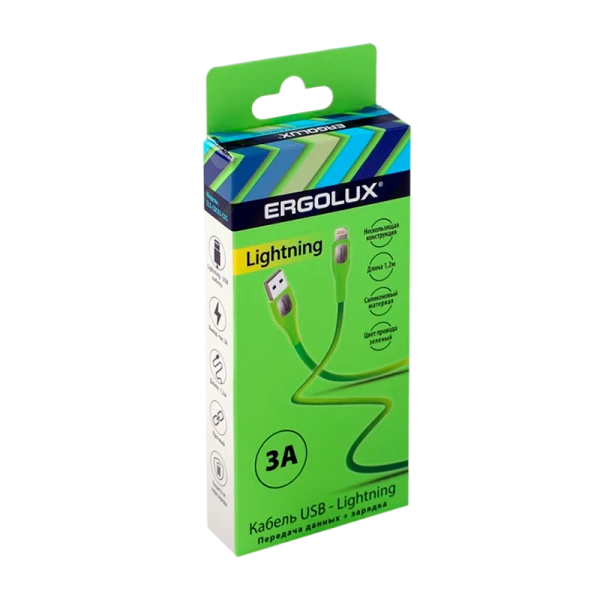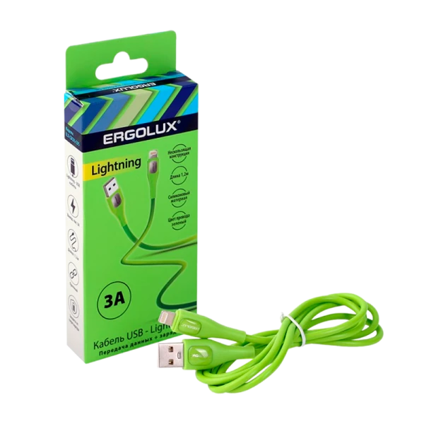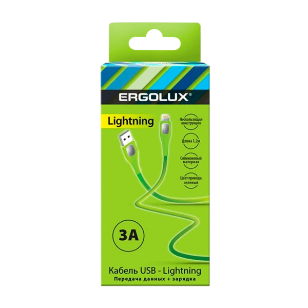Кабель Ergolux ELX-CDC03-C05 USB (m)-Lightning (m) 1.2м 3.0A зеленый в коробке (1/10/240)