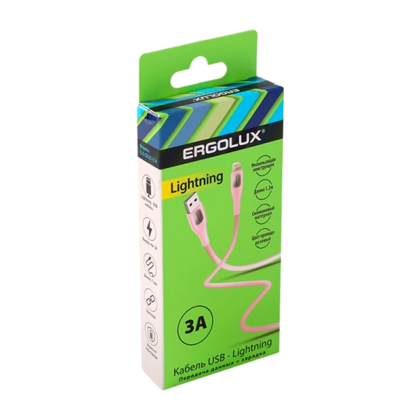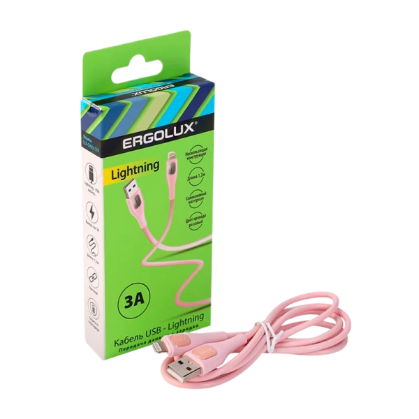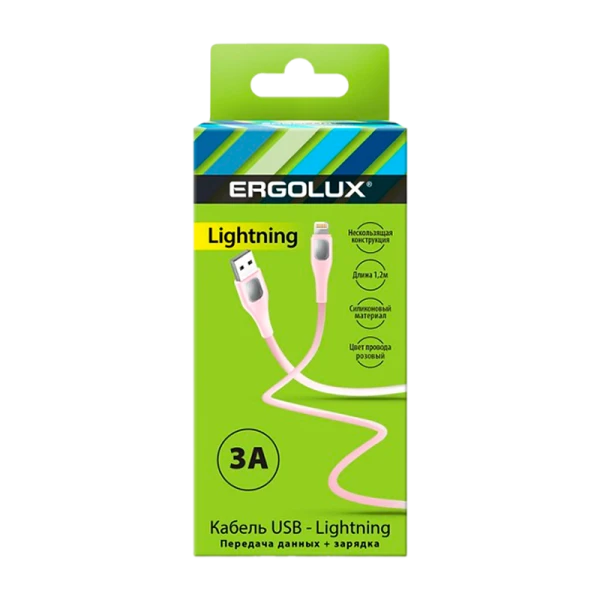 Кабель Ergolux ELX-CDC03-C14 USB (m)-Lightning (m) 1.2м 3.0A силикон розовый в коробке (1/10/240)