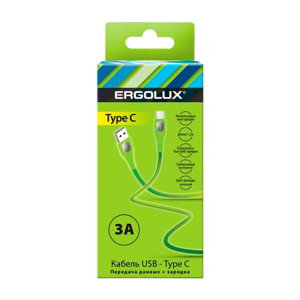 Кабель Ergolux ELX-CDC02-C05 USB (m)-Type-C (m) 1.2м 3.0A зеленый в коробке (1/10/240)