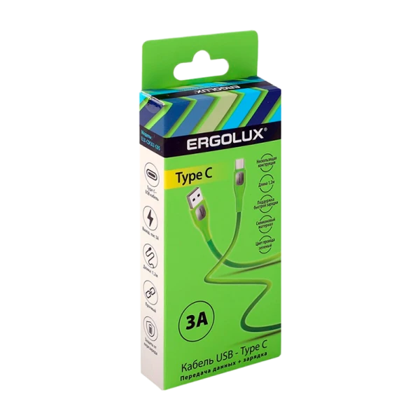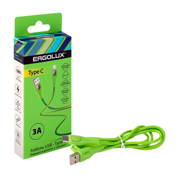 Кабель Type-C ERGOLUX ELX-CDC02-C05 поддерживает Quick Charge 3.0 и быструю передачу данных. Выполнен в ярком зелёном цвете. Мощность - 20 Вт, ток - 3 А. Оснащен защитой от перезаряда, длина - 1,2 м. Подходит для смартфонов, планшетов и ноутбуков.