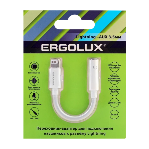 Переходник AUX Ergolux ELX-SA01-C01 Lightning (m)-Jack 3.5mm (f) 0.12м белый (1/10/240)