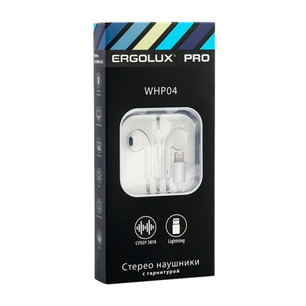 Наушники вставные Ergolux ELX-WHP04-C01 с микр. Lightning (m) белый (1/10/200)
