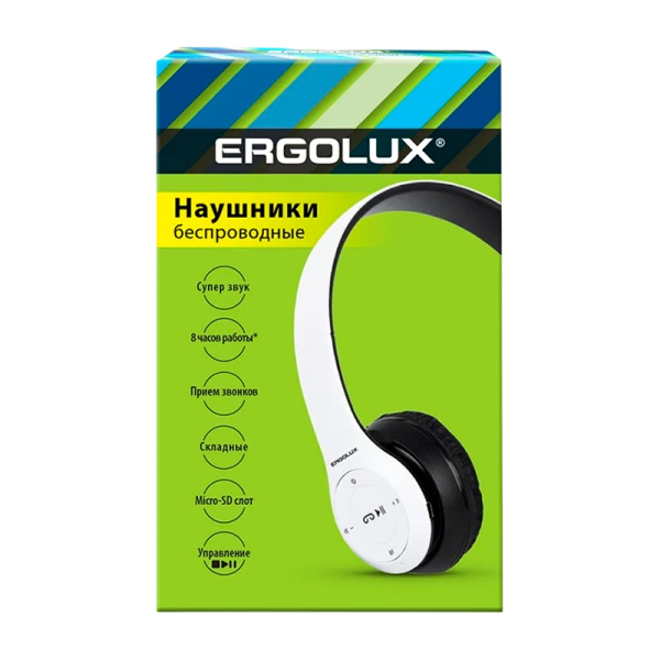 Наушники полноразмерные Ergolux ELX-BTHP01-C01 bluetooth 5.3 с микр. MP3/FM белый (1/5/80)