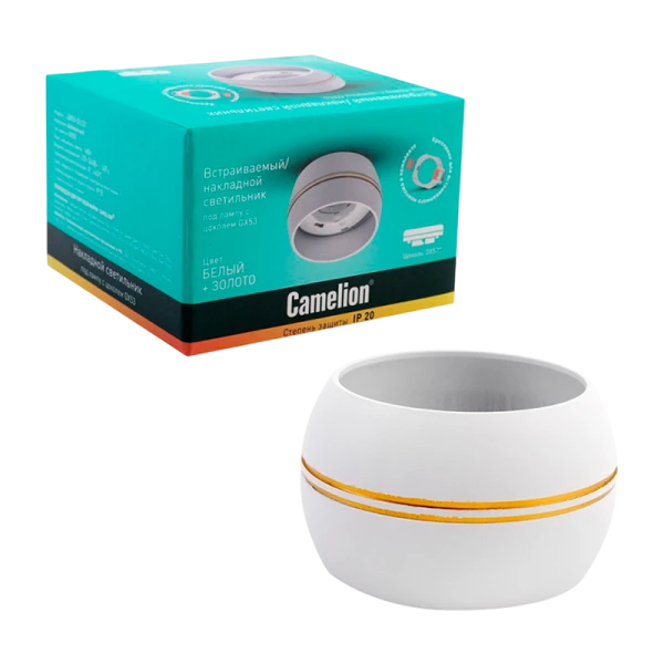 Светильник Camelion LGX53-03 C01 с универсальным креплением, подходит под лампу GX53. Используется в домашнем и коммерческом освещении. Цвет белый, степень защиты IP20.
