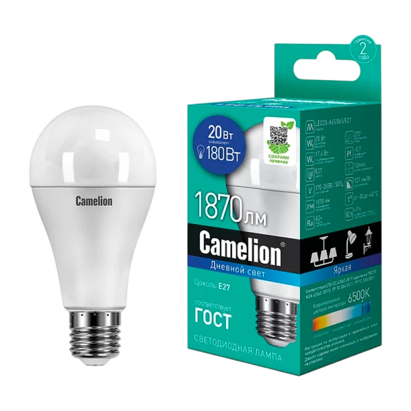 Светодиодная лампа Camelion 20Вт, 220В, предназначена для освещения жилых, офисных и коммерческих помещений.