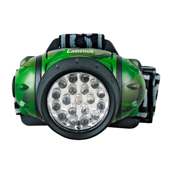 Налобный фонарь Camelion LED5313-19F4ML в камуфляжном корпусе с 19 светодиодами. Подходит для активного отдыха, туризма и кемпинга. Работает от 3xAAA батареек, четыре режима освещения.