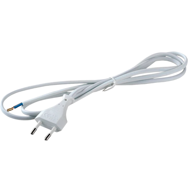 Сетевой кабельVolsten S-LRВ ШВВП2х0,75 белый длина 1,5 м с плоской вилкой для подключения бытовых и осветительных приборов к электрической сети. Максимальная суммарная мощность подключенных устройств не должна превышать 1300Вт.