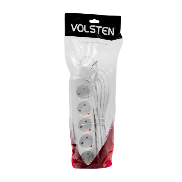 Бытовой удлинитель VOLSTEN с заземлением, рассчитан на 5 розеток и длиной провода 5 метров. Подходит для использования дома и в офисе, максимальная мощность 2200 Вт. Бытовой удлинитель с заземлением - это стандартный удлинитель, который предназначен для подключения к электросети приборов, удаленных от розетки. Он позволяет подключить несколько электроприборов одновременно.