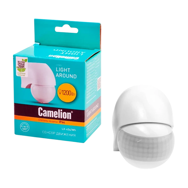 CAMELION LX-454/Wh - идеальный сенсор для управления освещением в доме. Датчик обеспечивает экономию энергии и автоматическое включение/выключение света. Сенсор предназначен для управления освещением и экономного использования электроэнергии при освещении. Сенсор автоматически включает свет при появлении в зоне его действия движущихся тепловых объектов (человек), а также автоматически выключает его через определенное время (согласно настройкам) при отсутствии движения объектов в зоне контроля.