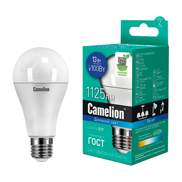 Светодиодная лампа Camelion LED13-A60/865/E27 идеально подходит для освещения домов и офисов. Долговечна и энергоэффективна.