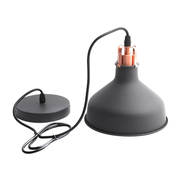 Светильник подвесной Camelion PL-425S C62, выполнен в черном и медном цветах, идеален для освещения квартир, загородных коттеджей, кафе и ресторанов. Подходит для ламп с цоколем E27.