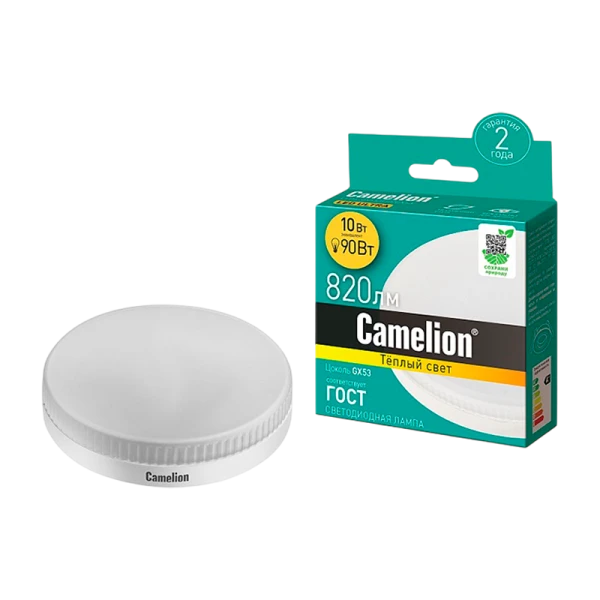 Светодиодная лампа Camelion LED10-GX53/830/GX53 отлично подходит для освещения жилых, офисных и коммерческих помещений. Обеспечивает яркий световой поток 820 лм при мощности 10Вт.