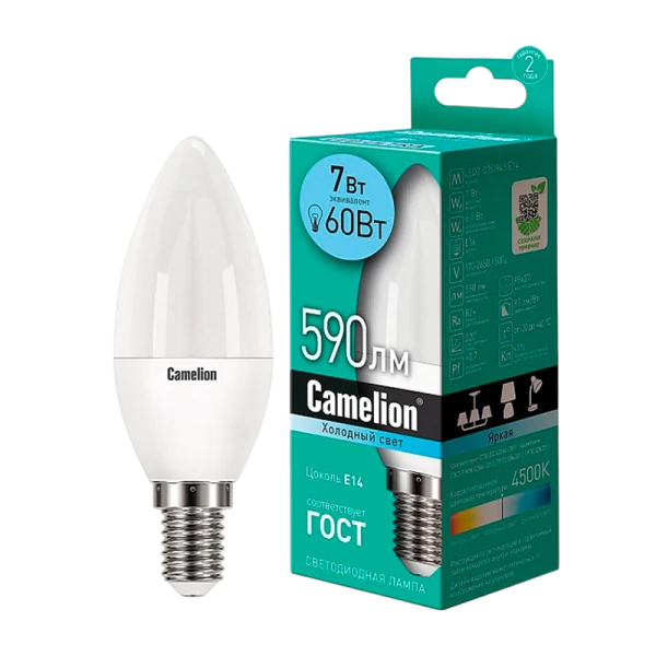 Светодиодная лампа Camelion LED7-C35/845/E14 - это идеальное решение для дома и офиса. Мощность 7 Вт и цветовая температура 4500K обеспечивают яркий и комфортный свет.