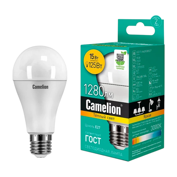 Светодиодная лампа Camelion LED15-A60/830/E27 идеально подходит для освещения жилых, офисных и коммерческих помещений.