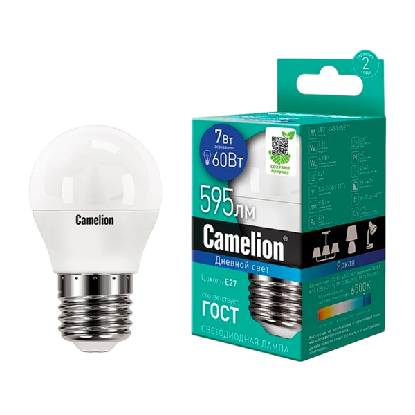 Светодиодная лампа Camelion LED7-G45/865/E27 предназначена для освещения жилых, офисных и коммерческих помещений.