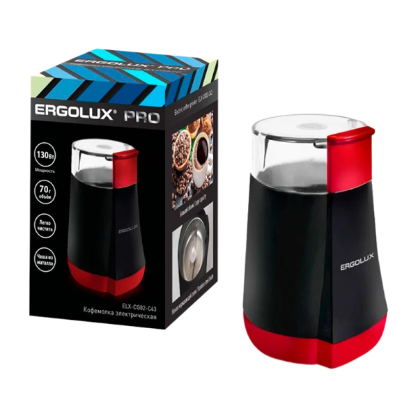 Кофемолка Ergolux ELX-CG02-С43 PRO электрическая черный красный (1/24)