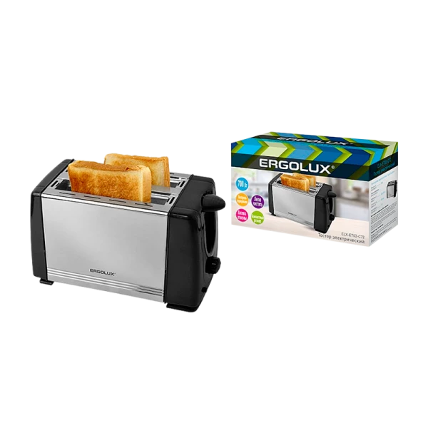 Тостер ERGOLUX ELX-ET03-C72 обладает мощностью 700 Вт и двух отделениями для хлеба. Корпус из нержавеющей стали и съемный поддон для крошек обеспечивают удобство в использовании.