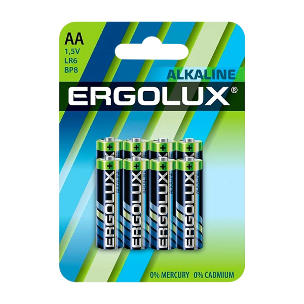 Батарейки Ergolux Alkaline BL-8 (AA - LR6) 1.5В, емкость 2700 мАч. Батарейки Ergolux используются в бытовой технике, работают при температуре от -10 до +40 °C. Срок хранения до 5 лет.